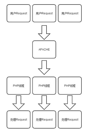 As mentioned above, PHP is a multi-process model. Therefore, if the PHP code gets corrupted, it won’t bring down the entire server. PHP code runs only in its own process scope and when a request shows an error, it only affects a specific request, whereas in Node.js environment, all requests are served in a single process and when a request results in an unknown error, the entire server is affected. Below is the model of PHP and Node.js for handling Http requests. php+apache model
