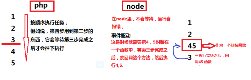 php: optimize sql, use components, use caching, in order for the thread to end as soon as possible for the next task (up and down sequential execution); node: single-threaded, asynchronous, event-driven. Because it runs fast and doesn’t wait, if the results returned from the front are used later, you need to encapsulate the back and execute it as a callback function.