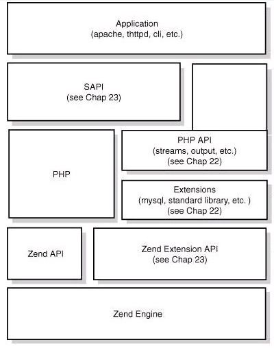 - Extensions: around the Zend engine, extensions through the component-based way to provide a variety of basic services, we commonly see a variety of built-in functions, standard libraries, etc. are realized through the extension, the user can also be based on the need to achieve their own extension.