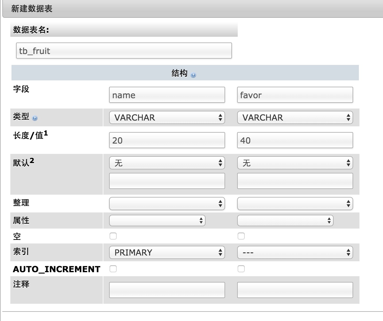 - Create a new MySQL data table with two fields, name and favor, to store the data.